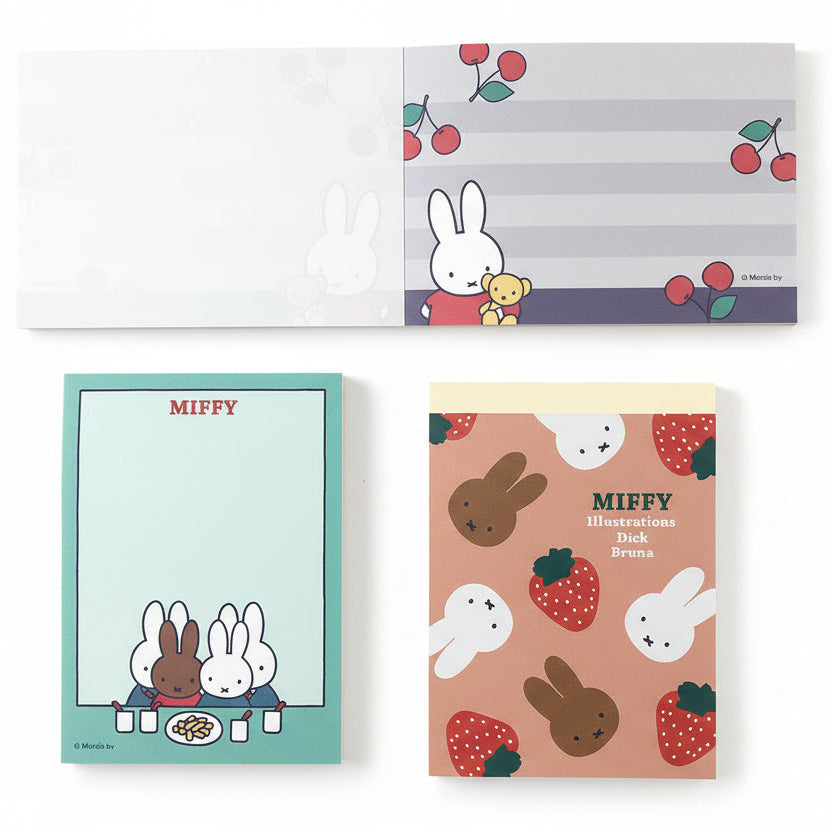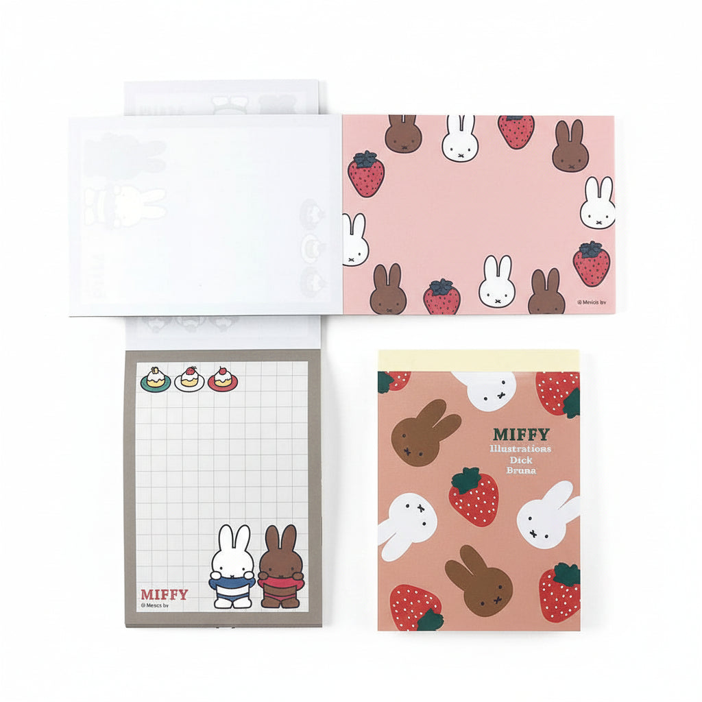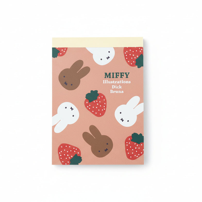 Adorable Miffy mini notepad in cheerful strawberry design. Perfect for jotting down notes, lists, or sweet messages. A delightful gift for Miffy fans of all ages.